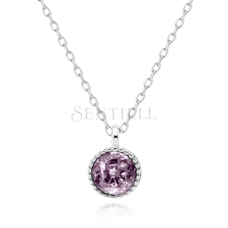 Srebrny naszyjnik pr.925 z ametystową cyrkonią