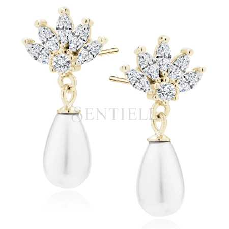 Srebrne pozłacane kolczyki pr. 925 perełki z białymi cyrkoniami