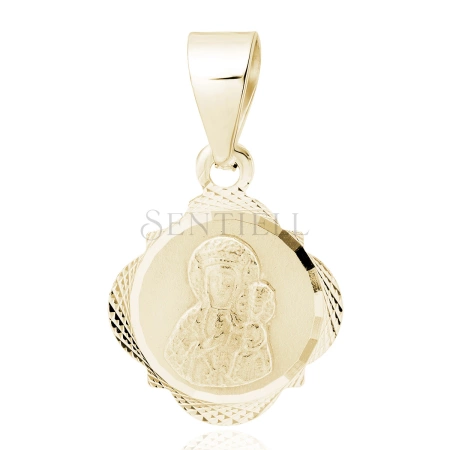 - Srebrny (925) diamentowany pozłacany medalik Matka Boska Częstochowska