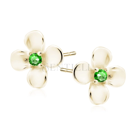 Srebrne, pozłacane kolczyki pr.925 kwiatki z zielonymi cyrkoniami