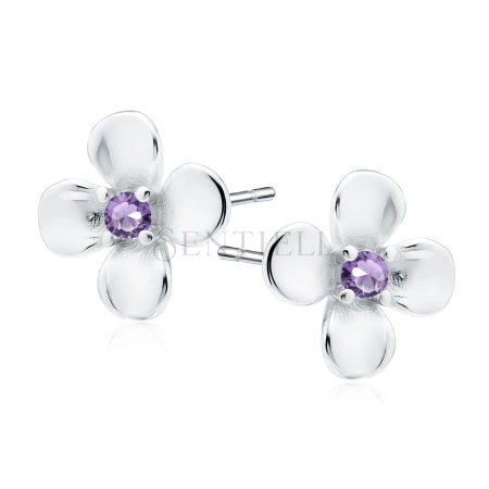 Srebrne kolczyki pr.925 kwiatki z fioletowymi cyrkoniami