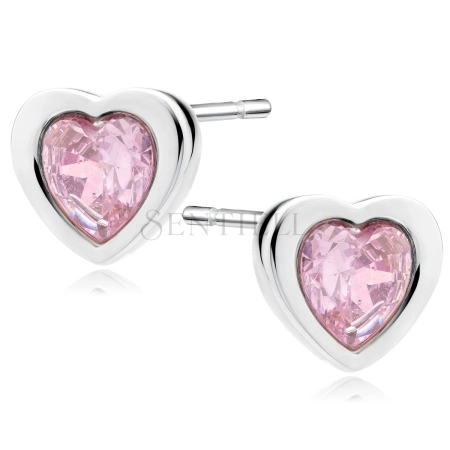 Srebrne kolczyki pr. 925 serca z jasnoróżowymi cyrkoniami