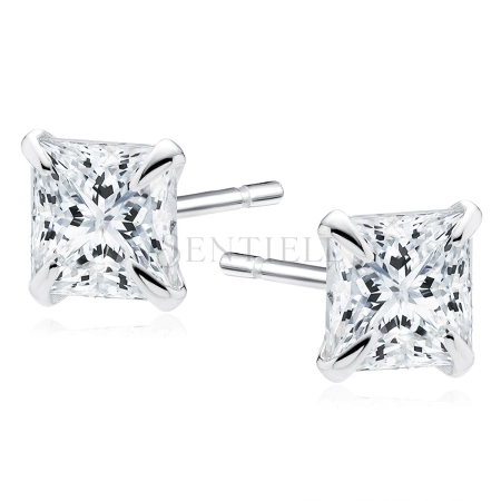 Srebrne kolczyki pr.925 cyrkonia biała 4 x 4mm kwadratowe