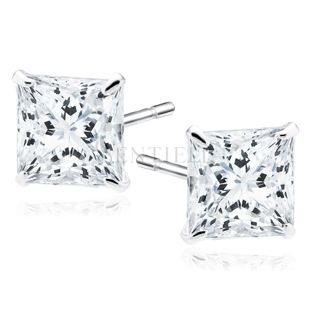 Srebrne kolczyki pr.925 cyrkonia biała 6 x 6mm kwadratowe