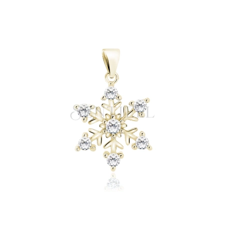- Srebrna pozłacana zawieszka pr. 925 śnieżynka z białymi cyrkoniami