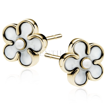 - Srebrne pozłacane kolczyki pr. 925 z masą perłową i perełką - kwiatki