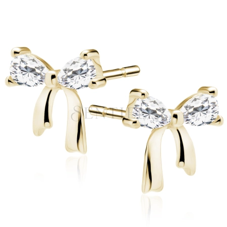 - Srebrne pozłacane kolczyki pr. 925 kokardki z białymi cyrkoniami