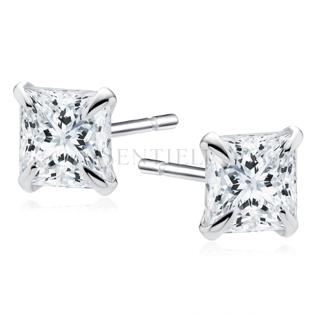 Srebrne, rodowane kolczyki pr.925 cyrkonia biała 4 x 4mm kwadratowe