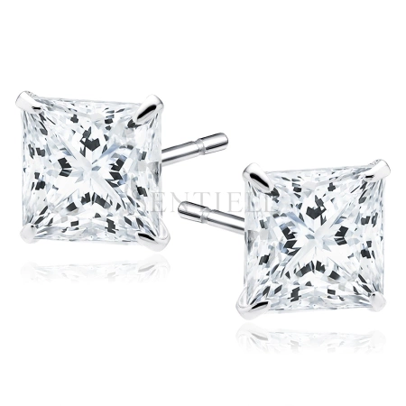 Srebrne, rodowane kolczyki pr.925 cyrkonia biała 6 x 6mm kwadratowe