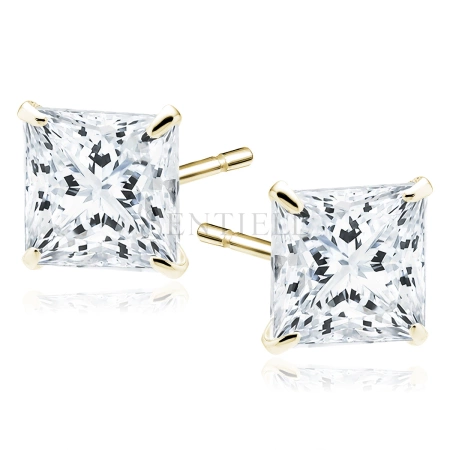 Srebrne, pozłacane kolczyki pr.925 cyrkonia biała 6 x 6mm kwadratowe