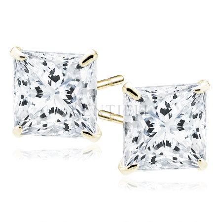 Srebrne, pozłacane kolczyki pr.925 cyrkonia biała 7 x 7mm kwadratowe
