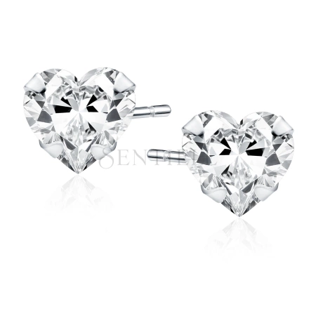 Srebrne, rodowane kolczyki pr.925 cyrkonia biała 5 x 5mm serduszka