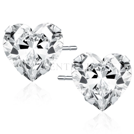 Srebrne, rodowane kolczyki pr.925 cyrkonia biała 7 x 7mm serduszka