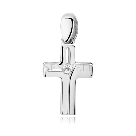 - Symboliczny srebrny wisiorek krzyż z cyrkonią od Sentiell. Idealny prezent na chrzest lub komunię!