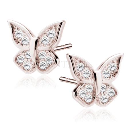 Srebrne pozłacane kolczyki pr. 925 motylki z cyrkoniami - różowe złoto