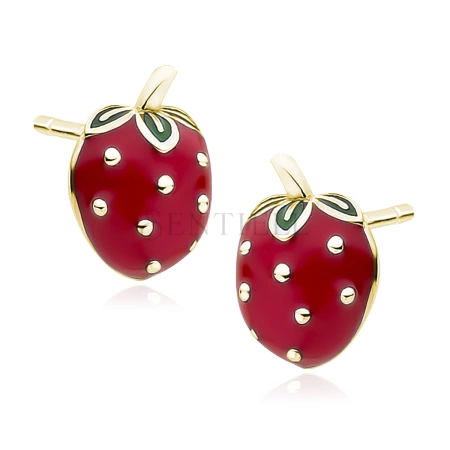 Pozłacane kolczyki srebrne pr. 925 emaliowane truskawki