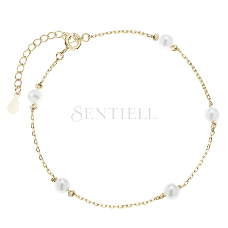Srebrna pozłacana bransoletka pr.925 - łańcuszek z perłami