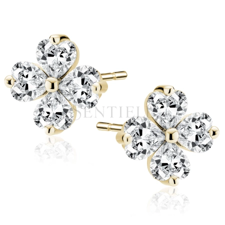 Srebrne pozłacane kolczyki pr. 925 koniczyny z białymi cyrkoniami