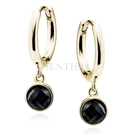 Srebrne pozłacane kolczyki pr.925 kółka z czarnymi cyrkoniami