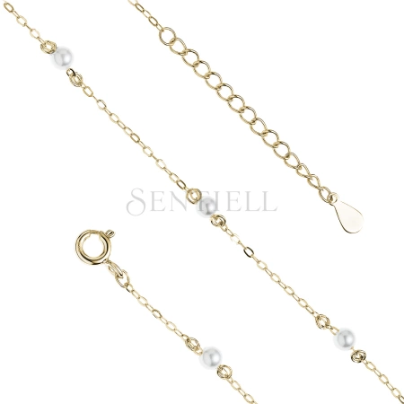 • Srebrna (925) pozłacana bransoletka na nogę z perłami