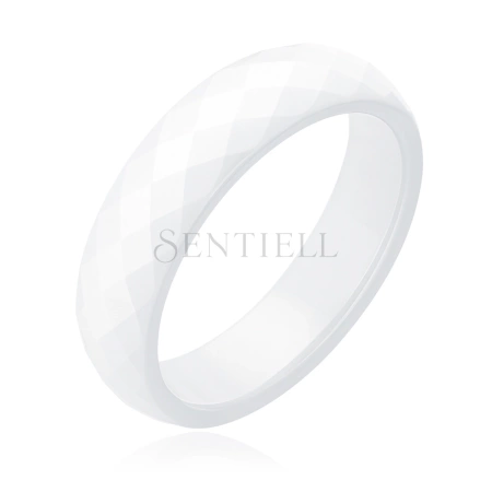 Bialy fasetowany pierścionek ceramiczny 6mm
