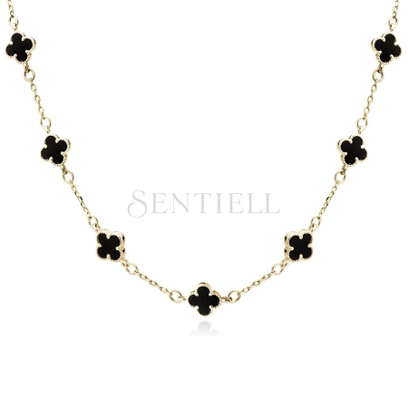 Srebrny pozłacany naszyjnik pr.925 z czarnym onyksem - czterolistna koniczynka