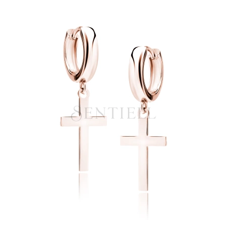 Srebrne pr.925 okrągłe pozłacane kolczyki z krzyżem - różowe złoto