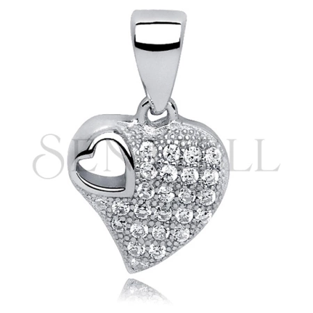 Srebrna zawieszka pr.925 serce z cyrkoniami serce w środku