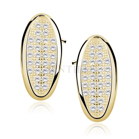 Srebrne kolczyki pr. 925 owalne, Cyrkonia microsetting, pozłacane