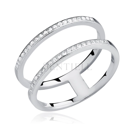 Srebrny, duży pierścionek podwójny pr.925 cyrkonia biała