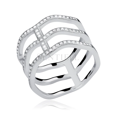 - Rodowany srebrny pierścionek pr. 925 cyrkonia "knuckle rings"