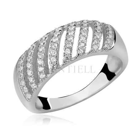 Srebrny pierścionek pr.925 z białymi cyrkoniami - wypukły, ażurowy