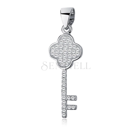 Srebrna zawieszka pr.925 kluczyk z cyrkoniami - koniczynka