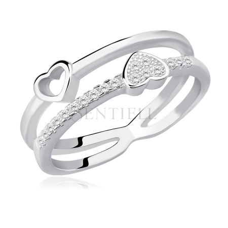 Srebrny pierścionek pr.925 serduszka z białą cyrkonią