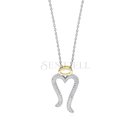 Srebrny naszyjnik pr.925 skrzydła z cyrkoniami i pozłacaną aureolą