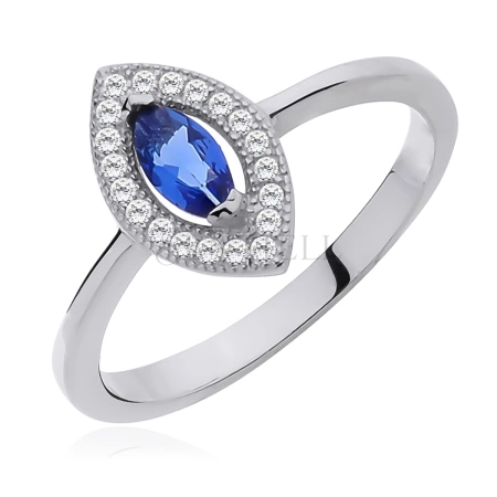Srebrny pierścionek pr.925 cyrkonia biała i szafirowa