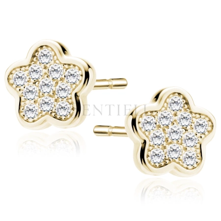 Srebrne kolczyki pr. 925 Cyrkonia microsetting kwiatki złocone