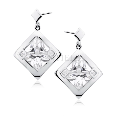 Srebrne kolczyki pr.925 Cyrkonia biała romb