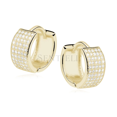 Srebrne kolczyki pr.925 kółka z pięcioma rzędami cyrkonii, pozłacane