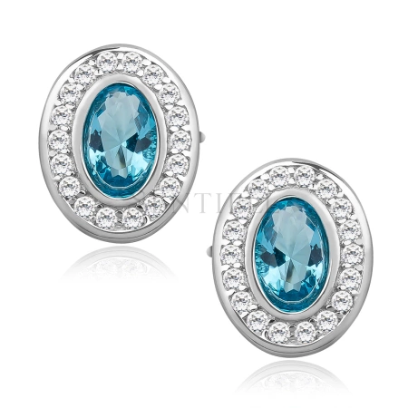 Srebrne pr.925 owalne kolczyki z akwamarynową cyrkonią