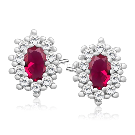 Srebrne kolczyki pr. 925 Cyrkonia rubinowa - karmazycja