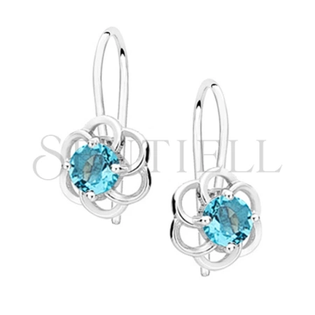Srebrne kolczyki pr.925 kwiatki z akwamarynową cyrkonią