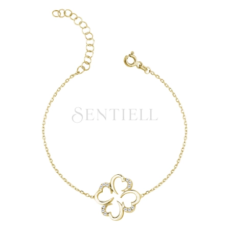 Srebrna bransoletka pr.925 z cyrkoniami - pozłacana koniczyna