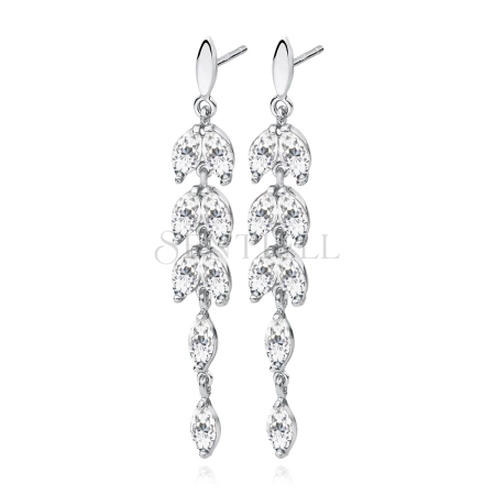Srebrne kolczyki ślubne pr.925 długie liście z cyrkoniami