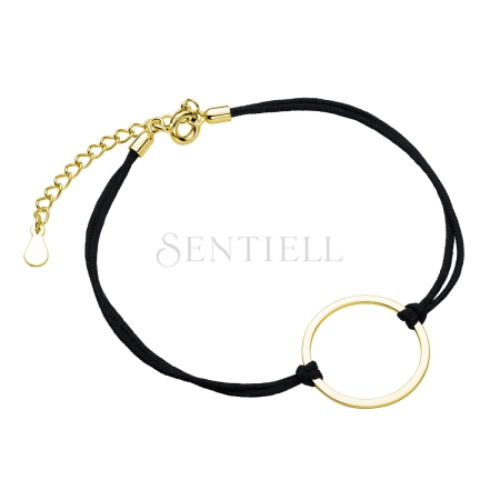 Srebrna pr.925 bransoletka z czarnym sznurkiem - pozłacane kółko
