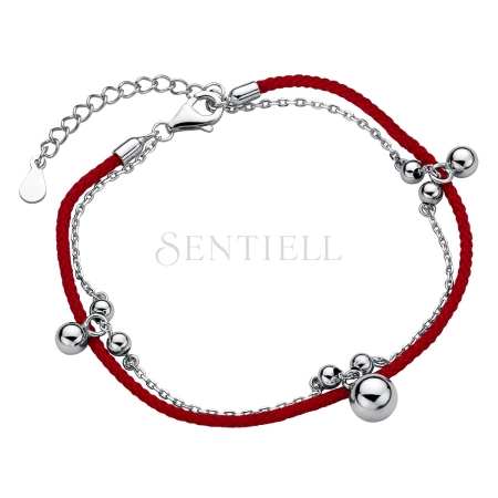 Srebrna pr.925 bransoletka z czerwonym sznurkiem - kuleczki