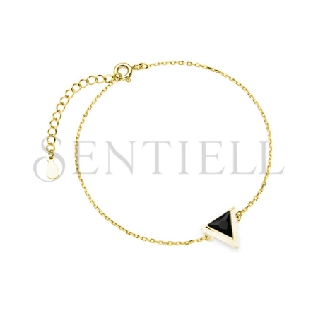 Srebrna pozłacana bransoletka pr.925 trójkąt z czarną cyrkonią