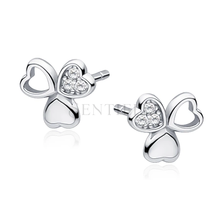 Srebrne pr.925 kolczyki z białymi cyrkoniami - koniczyna