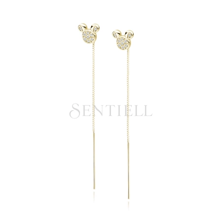 Srebrne (925) pozłacane kolczyki myszka z białymi cyrkoniami