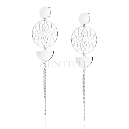 Srebrne (925) kolczyki - Mandala z kółkiem, półkolem i łańcuszkami